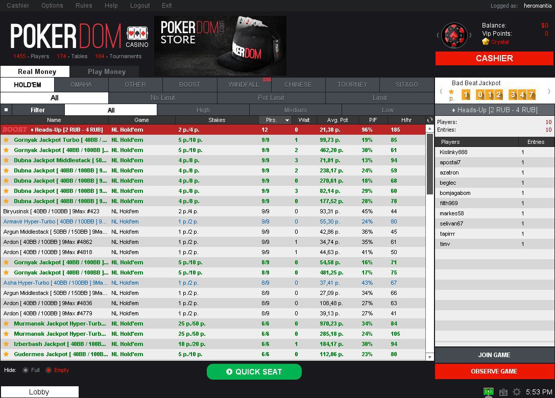 Порядок вывода выигранных средств в Pokerdom